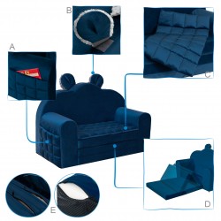 Kanapa dla dzieci- Sofa dwuosobowa 71x35 cm Granatowa