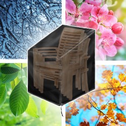 - Uniwersalny rozmiar: Pokrowiec jest przeznaczony do krzeseł ogrodowych z niskim lub wysokim oparciem. Jednocześnie można pod nim schować nawet 4 krzesła ułożone jedno na drugim.