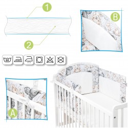 Ochraniacz wyposażony jest w solidne troczki umożliwiające stabilne przymocowanie do łóżeczka, a ozdobna falbanka nadaje całości elegancki wygląd. Dzięki możliwości prania w pralce w 30°C, zachowanie higieny jest niezwykle proste. Certyfikat OEKO-TEX gwarantuje bezpieczeństwo dla zdrowia Twojego dziecka.