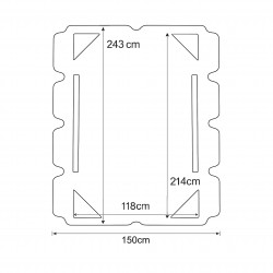 Wymiar całkowity (z falbankami): 243x150 cm