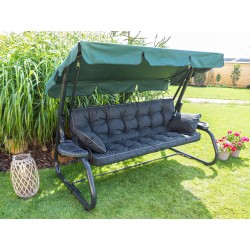 Wykonana z wytrzymałego materiału Ekolen, odpornego na wilgoć i promieniowanie UV, poduszka zachowuje intensywne kolory i estetyczny wygląd przez długi czas. Wypełnienie ze zmielonej pianki poliuretanowej gwarantuje sprężystość, a dołączone dwie małe poduszki typu „jasiek” pełnią funkcję bocznych podłokietników. Małe poduszki posiadają ściągany pokrowiec, który można prać w pralce.