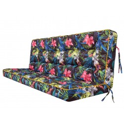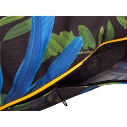 Wykonana z wytrzymałego materiału Ekolen, odpornego na wilgoć i promieniowanie UV, poduszka zachowuje intensywne kolory i estetyczny wygląd przez długi czas. Wypełnienie ze zmielonej pianki poliuretanowej gwarantuje sprężystość, a dołączone dwie małe poduszki typu „jasiek” pełnią funkcję bocznych podłokietników. Małe poduszki posiadają ściągany pokrowiec, który można prać w pralce.