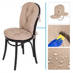 Pikowana poduszka Vigo z oparciem to wygodne i trwałe rozwiązanie na krzesła ogrodowe i kawiarniane. Wodoodporna, dwustronna, z troczkami – idealna do użytku wewnątrz i na zewnątrz.