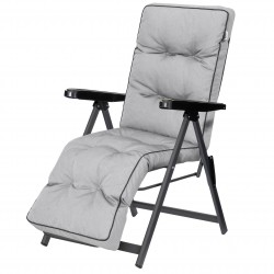 Aby zmienić nachylenie, wystarczy chwycić podłokietniki po obu stronach leżaka, delikatnie unieść je do góry, a następnie przesunąć do przodu lub do tyłu – w zależności od tego, jaki kąt nachylenia chcesz uzyskać. Po opuszczeniu podłokietnika wybrana pozycja zostaje stabilnie zablokowana.