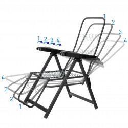 Leżak ogrodowy Galaxy został wyposażony w 4-stopniowy system regulacji oparcia, który pozwala łatwo ustawić pozycję od leżącej do siedzącej. Mechanizm działa intuicyjnie i nie wymaga użycia dodatkowych narzędzi, dzięki czemu dopasowanie ustawienia jest szybkie i wygodne.