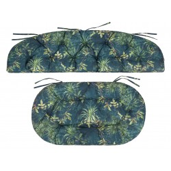 Zestaw zaprojektowano z myślą o meblach z rattanu i wikliny – kanapach i fotelach ogrodowych. Dzięki troczkom mocującym, poduszki stabilnie przylegają do mebli i nie przesuwają się podczas użytkowania. Dekoracyjne przeszycia przypominające guziki nadają całości elegancki, klasyczny wygląd.