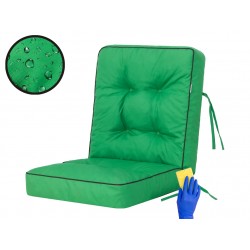 Uszyta i wypchana na maszynach ręcznych z wytrzymałej tkaniny Ekolen, odpornej na wilgoć i łatwej w czyszczeniu. Tył wykonano z jednobarwnej włókniny polipropylenowej, a troczki z tyłu pozwalają na stabilne przymocowanie poduszki do krzesła lub huśtawki. Ozdobne, okrągłe pikowania nadają jej trójwymiarowy efekt i elegancki wygląd.