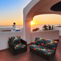 Dostępna w 14 wzorach kolorystycznych oraz trzech różnych rozmiarach, Nel pozwala stworzyć spójną i stylową aranżację ogrodu, tarasu lub balkonu. Pokrowiec zapinany na zamek błyskawiczny ułatwia czyszczenie, a zastosowane materiały są odporne na promieniowanie UV i wilgoć – co gwarantuje długotrwały, świeży wygląd.