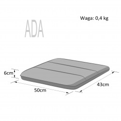 Poduszka Ada to wygodna i estetyczna poduszka na krzesła ogrodowe, balkonowe i do użytku domowego. Wykonana z trwałych, certyfikowanych materiałów, odporna na wilgoć i blaknięcie. Dzięki troczkom stabilnie trzyma się mebla, a grubość 6 cm zapewnia komfortowy wypoczynek każdego dnia.